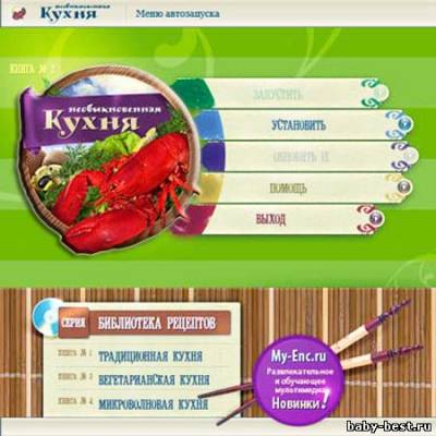 Каждому порой хочется полакомиться чем-нибудь необычным, аппетитным и привлекательным, удивить гостей оригинальностью праздничного стола или просто сделать приятный подарок любимому человеку. С помощью электронной книги «Необыкновенная кухня» у гурманов появилась возможность самим приготовить экзотические и изысканные яства, которым позавидовал бы шеф-повар любого ресторана. Пользуясь богатейшей коллекцией интересных рецептов, кулинары-экспериментаторы смогут приготовить блюда из всевозможных деликатесов и экзотических продуктов: форели, лосося, австралийского ерша, красного берикса, устриц, артишоков, водяного кресса – и это далеко не все! Во время мастер-класса профессиональный повар научит всех желающих готовить свои фирменные салаты, холодные закуски, супы, мясные кушанья и изумительные десерты. Вы увидите весь процесс приготовления каждого блюда, узнаете особенности некоторых продуктов, а также разнообразные способы оформления блюд и маленькие эстетические хитрости.