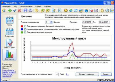 Отследите период в вашем менструальном цикле для наиболее благоприятного зачатия. Программа высчитает для вас день овуляции, в этот день вероятность зачатия максимальна. Защитите себя от нежелательной беременности, 4WomenOnly покажет на календаре максимально безопасные дни.