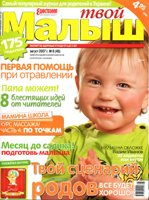 Самый популярный журнал для родителей в Украине! Твой Малыш – эксперт по здоровью и уходу от 0 до 3 лет. В этом номере: первая помощь при отравлении, курс массажа, месяц до садика – подготовь малыша, твой сценарий родов и многое другое.