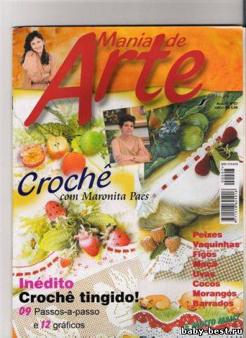 В журнале фотоинструкции выполнения различных украшений крючком. В номере: фрукты и ягоды.