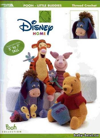 В журнале вязаные диснеевские персонажи Винни Пух, Пятачок, Тигра и Ослик Иа.