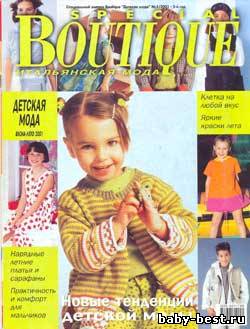 О журнале: Специальный выпуск итальянского журнала Бутик. Коллекция детской одежды весна-лето. Нарядные летние платья и сарафаны. Практичность и комфорт для мальчиков: свободные брюки и спортивный жилет. Яркие топы, брюки для малышей. Морской стиль: ветровки, куртки, брюки, юбки, комбинезоны. Размеры для детей от 0 до 12 лет