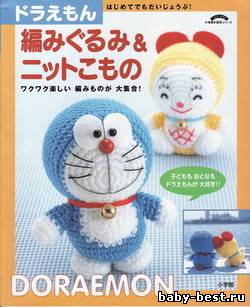 В журнале вязаные игрушки и аксессуары для детей с изображением кота-робота по имени Дораэмон, главного героя из одноимённого сериала.