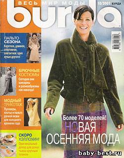 О журнале: Классика: элегантный английский стиль, воплощенный в твиде и фланели, бархате и шелке. Турне: Страсбург — традиции и современность — представляем брючные костюмы. Базовые модели: классическое, романтическое, спортивное? В любом случае без пальто не обойтись. Эксклюзив: новый трикотаж, от пуловера до пальто. Молодежный дизайн: стиль комиксов. Burda plus: великолепный комби-гардероб в коричневых тонах для полных женщин с размерами 44-52. Домашняя одежда: устраивайтесь поудобнее в комфортных вещах из флиса. Дети: фантазийные модели в стиле хиппи