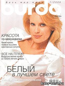 О журнале: Актуальный дизайн: ностальгические материалы и женственные силуэты — белый цвет романтичен как никогда. Базовый гардероб: в компании с мадрасской клеткой. Мода для невысоких. Тенденции: полные фантазии вышитые апликации, яркие набивки, интересные детали — в самом жизнерадостном стиле сезона. Отдых: просто шить — удобно носить — модели из мягкого джерси. Дети: игры на пляже. Burda plus