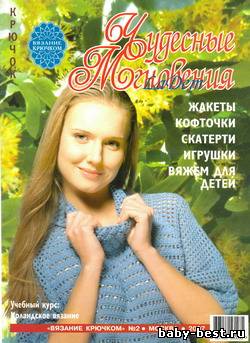 О журнале: В гостях у журнала Васильева Ирина Порфирьевна. В номере представлены 15 моделей, среди которых 5 детских комплектов. А также: ажурный жилет, ажурная накидка, платья, кофточки и туники.