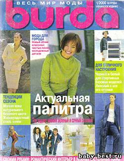 О журнале: Burda design: спортивные базовые модели в черно-белой гамме. Турне: Сан-Франциско и новый стиль хиппи. Тенденции: мягкая кожа в кремовых и бежевых тонах. Город: новый минимализм. Модные цвета: от баклажана до сирени. Burda plus: непринужденная мода для отдыха. Семья: пижамы и ночные рубашки. Дети: темно-синий деним, белая отстрочка
