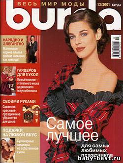 О журнале: Классика: Ваш большой выход! В тафте и шелке, мехах и пайетках вы будете блистать на любом празднике. Турне: Осло — непринужденный шик и естественная элегантность. Семья: все на свежий воздух. Для болших и маленьких гулен — теплые куртки и брюки. Экстра: звездный час маленького черного платья. Молодежный дизайн: новый фольклорный стиль — это очень нарядно. Burda plus: устраивайтесь поудобнее в домашней одежде класса люкс. Дети: маленькие модники в ожидании чуда. Гардероб для кукол: полный комплект — от спального мешка до джинсового полукомбинезона