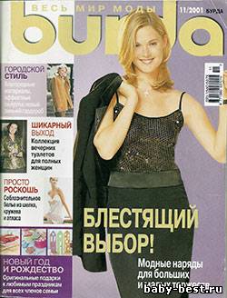О журнале: Классика: эффектные вечерние туалеты — от смокинга до платья для коктейля. Турне: Зальцбург — мода, созвучная музыке Моцарта. Тенденции: новый военный стиль — сама женственность. Эксклюзив: роскошное белье из шелка, кружева и атласа — искушение для искусительниц. Молодежный дизайн: актуальный стиль денди. Burda plus: сказочно красивые вечерние туалеты для полных женщин. Дети: теплые и уютные зимние одежки для самых маленьких