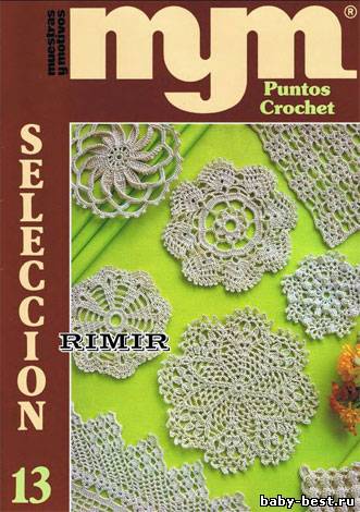 В журнале представлено 105 образцов разнообразных узоров для вязания крючком. На каждый образец дана цветная фотография и схема вязания.
