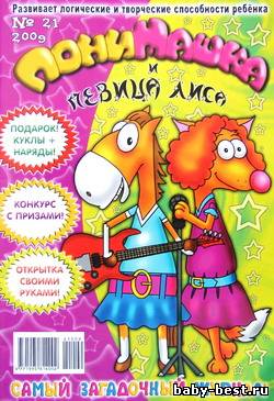 О журнале: Красочный журнал для детей младшего школьного возраста с раскрасками, кроссвордами, загадками, ребусами и лабиринтами. Тема номера: пони Машка и певица Лиса. Поделка номера: бумажные фигурки пони Машки и Лисы, а также 4 комплекта одежды для них.