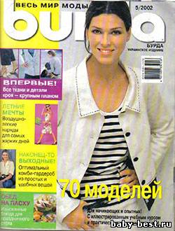 О журнале: Классика: черно-белые контрасты — классические цвета в новых комбинациях. Тенденции: назад, в 50-е — юбки-солнце и цветочные рисунки создают солнечное настроение. Город: непринужденная элегантность — как быть хорошо одетой при 30 градусах в тени. Экстра: наконец-то выходные — прогулочный комби-гардероб с вязанными пуловерами. Актуальный дизайн: цветочное великолепие для отпуска. Burda plus: актуальный стиль сафари для полных женщин. Дети: веселый морской стиль для юнг от 7 до 10