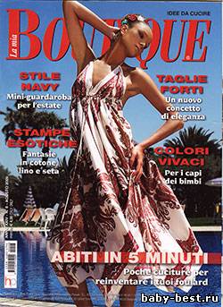 О журнале: В этом номере итальянского журнала представлены последние тенденции летнего сезона. Платья и топы из шелковых платков, шорты, жилеты, мини-юбки, брюки-шаровары, платья и жакеты. Летние одежки для малышей: брючки, топ, платьице и юбочка