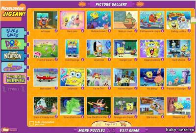 150 паззлов на тему Дора, Джимми Нейтрон, Губка Боб и др.