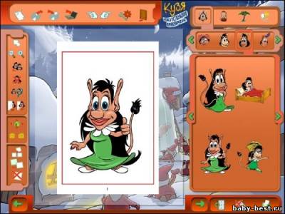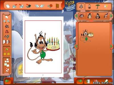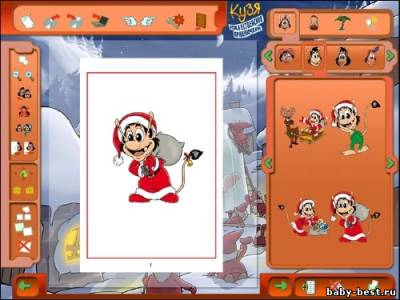 Новую историю о рождественских похождениях Кузи ребенок нарисует сам: придумает сюжет, подберет персонажей, создаст картинки и напишет реплики. Все это очень легко получится даже у тех ребят, которые только начинают знакомиться с компьютером. Да и почему это должна быть только одна история? Возможностей программы хватит, чтобы воплотить замыслы самого неутомимого фантазера и создать настоящую «Кузериаду». Итак, однажды Дед Мороз…