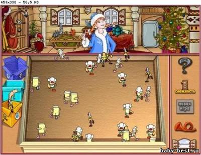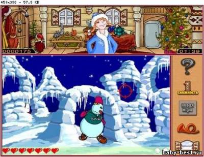 У Деда Мороза разбились новогодние часы и чтобы он успел положить под каждую елочку подарок вам надо помочь ему собрать разлетевшиеся части циферблата. Помощником у вас в этом деле будет снегурочка и снеговик. Вам предстоит сыграть в 11 популярных, любимых всеми детьми игр. Такие игры, как pacman, лыжня, слалом, змейка, лабиринт, взятие снежной крепости, меморина, раскраска, сложи картинку, переправа, веселое мороженое и часы. За каждую победу вы получите по частичке от циферблата, а в конце из полученных частичек вам предстоит собрать часы.
