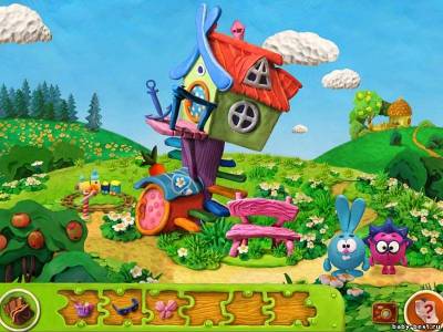 Об игре: Первая в истории круглой компании пластилиновая компьютерная игра-квест! Неутомимые Смешарики путешествуют по параллельным мирам и приглашают с собой вас и ваших детей! Вы не найдете этого сюжета ни в одном мультфильме или книжке: это абсолютно новая и полностью правдивая история. В Стране Смешариков празднуют День изобретателя, а лучшим подарком в такой праздник, конечно, является гениальное изобретение, например, Машина для перемещения в параллельных мирах. Непоседы Крош и Ёжик оказываются в машине и попадают в пластилиновую Сме-Вселенную. Для того чтобы починить аппарат, им предстоит обойти таинственный мир и обнаружить недостающие детали, починить посадочную полосу и, в конце концов, вернуться домой. Ребятам предстоит применить все свои способности и смекалку, чтобы разгадать тайны параллельного мира: найти то, что поможет зарядить усилитель голоса, узнать как совершить подвиг ради прекрасной дамы, что нужно делать во время солнечного затмения и много-много другого.