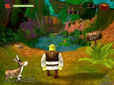 В приключенческой игре «Шрек 2», созданной по мотивам одноименного мультипликационного блокбастера, знаменитый зеленый огр снова отправляется в путь, и на этот раз он не один — с ним его друзья. Вместе со Шреком вам предстоит совершить увлекательное путешествие по причудливо искаженному сказочному миру, посетить новые локации, полные опасностей, чудовищ и головоломок, а также использовать уникальные возможности каждого персонажа, чтобы уцелеть.