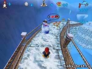 Помоги пингвиненку Кельвину спасти Снежную страну. Пройди все уровни, собери как можно больше бонусов и нанеси поражение доктору Грелки в его замке.