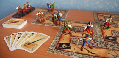 Предлагаю вам настольную игру Cartagena. По жанру эта игра относится к играм гонкам. Задача игрока провести своих пиратов через подземелье и уплыть на лодке раньше, чем это сделает соперник. Механика игры очень проста: в начале игрокам раздаётся по 6 карт, на которых изображены определённые символы. Эти же изображения есть на плане подземелья. Делая ход нужно поместить пирата на пустую клетку подземелья с тем же изображением, что и на карте, карта при этом, сбрасывается. Когда кончаются карты в руках, игрок делает ход пиратом назад, до первой «заселённой» клетки, и берёт из колоды соответствуещее колличество карт. Всё! Между тем игра захватывает не на шутку! Рекомендуем всем, а в особенности людям, которые только начали интересоваться настольными играми.