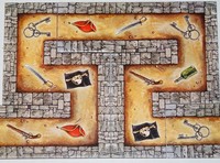 Изготовить игру самостоятельно не составит труда. Каждую часть подземелья наклеите на лист ватмана (клей-карандаш лучше всего), затем вырежте и склеите их вместе. Карточки подземелья двухсторонние.