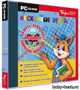 Курс «Нескучные уроки: развиваем память, внимание, творческое мышление» создан специально для юных пользователей и их заботливых родителей. Данный продукт входит в серию «Нескучные уроки», содержащую яркие обучающие программы, которые смогут обеспечить всестороннее развитие детей, помогая им учиться с удовольствием. В данном мультимедийном издании собран ряд увлекательных заданий, которые способствуют развитию творческих способностей, памяти, воображения и внимания ребенка. Яркое и красочное оформление программы и неординарные задания помогут сформировать устойчивый интерес ребенка к упражнениям, и доставит ему массу удовольствия. Помимо этого в издании содержатся статьи для родителей, которые помогут узнать много того, чем можно занять ребёнка в свободное время, чтобы это было интересно и с полезно для него. Программа рекомендована детям от 4 до 12 лет.