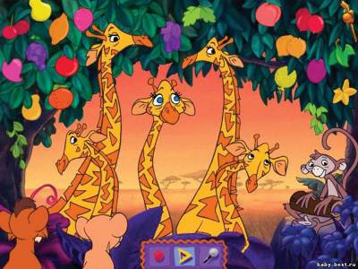 У поклонников знаменитого мультфильма появится возможность вновь встретиться с Кову, Киарой, Тимоном, Пумбой и другими уже полюбившимися персонажами. Малыши совершат вместе с диснеевскими персонажами увлекательное путешествие, а также выполнят веселые и интересные задания на развитие памяти, внимания, логического мышления. У ребят будет возможность познакомиться с забавными обитателями джунглей, посетить обезьяний лес, львиную поляну, сад жирафов и много других замечательных мест. Рисуя и раскрашивая, выполняя музыкальные задания, дети повторят названия цветов, разовьют свою фантазию, творческие способности и музыкальный слух. Диск содержит множество увлекательных игр с великолепной графикой и замечательной музыкой.
