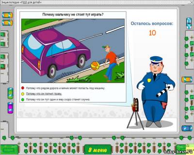 Программа «ПДД для детей» расскажет ребёнку, почему нельзя перебегать дорогу на красный свет или кататься на санках вблизи проезжей части. Весёлые и красочные герои объяснят ребёнку, как вести себя на дороге, и разберут всё на конкретных примерах, а материал, преподнесенный в виде смешных мультиков, поможет ребёнку представлять себя на месте главных героев!