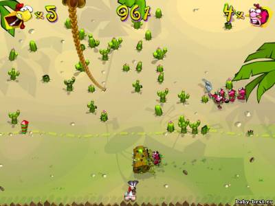 В вашем распоряжении 2 вида оружия и много дополнительных примочек, которые помогут отразить атаки врагов. Красочная графика, весёлая музыка.