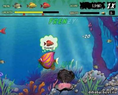 В игрушке Feeding Frenzy 2 Deluxe мы управляем хищной рыбкой, которая поедает других рыб и растет, уворачиваясь от более крупных хищников. Имеем: