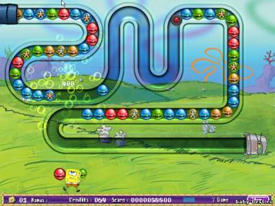 Очень миленькая шарико-плевалка с участием Губки-Боба. Суть как и у всех Зумм — бегаем и кидаем шарики чтоб уничтожить ряды…