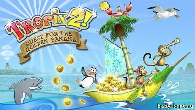 Проведите свои каникулы и веселье вместе Tropix 2: Поиски Золотого Банана! Играйте в любимые игры Tropix: Кокосовый Шар, Каскад, и Кнопка Puffer! Или попытайте щастья в других новых играх как Комната Мороженого, Каменный Накопитель, Обмен Рыбы и т.д.! Заработайте кучу долларов, чтобыукрасить различные острова по пути и отпереть оригинальную основную сюжетную линию, изображающую любимую обезьяну, русалок, пиратов, и даже несколько новых друзей! Окунитесь в рай игр сегодня вместе с Tropix 2!
