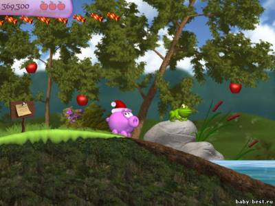 Вы когда-нибудь видели свинку прыгающую по деревьям? Жонглирующую яблоками? Выполняющую сальто? Значит Вы еще не встречали м-с Piggly. Ее задача заключается в том, чтобы испечь восхитительный яблочный пирог для своих поросят. Она отправляется в лес на поиски лучших яблок для своего пирога. Помогите м-с Piggly преодолеть все опасности на ее пути и порадовать своих поросят.