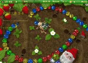 На сей раз здоровый жук стреляет по шарикам, цель все таже, стрелять в соответствующий цвет