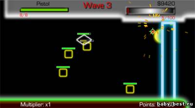 Это игра, где Вы защищаете свою башню от 40 волн геометрических форм, в пределах от маленького квадрата до ракетного восьмиугольника. 6 видов оружия, модернизируемые в процессе игры.