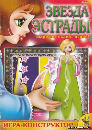 Игра-конструктор «Звезда эстрады». Предназначена для детей старшего дошкольного, младшего и среднего школьного возраста. С помощью клея и ножниц можно создать замечательное пространство для игры ребенка, включающее в себя модель сцены (в том числе мебель, прожектора, занавеси, цветы, объемные музыкальные колонки и т.д.), бумажную куклу с разными нарядами по теме игры, разнообразные аксессуары. Игра будет полезна для развития мелкой моторики, аккуратности, памяти и внимания ребенка. Для оформления игры использовался стиль современной эстрады.