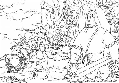 Раскраска «Алеша Попович и Тугарин Змей». 12 картинок из замечательного и всеми любимого мультика.