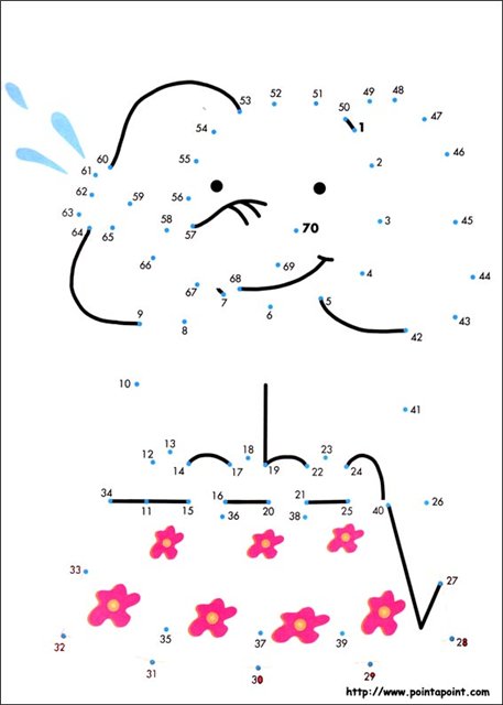 Надо обвести по точкам или числам, потом раскрасить!!!