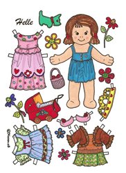 Много бумажных животных,кукол,бумажные кроватки и бассейн для них.