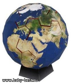Описание: Идея очень оригинальная. В pdf файлах лежат цветные раскладки для склеивания трехмерного пазла глобуса. Можно распечатать, вырезать и склеить. Для детей постарше возможно будет интересно самим сделать такой глобус.