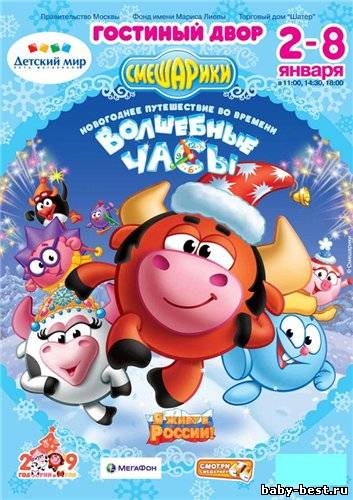 О фильме: Ну какой Новый год без Смешариков! Даже зимой, когда вся природа засыпает, с нашими любимыми героями случаются забавные и удивительные приключения, а порой – самые настоящие чудеса… В Стране Смешариков неожиданно появилось сразу несколько Нюш, а Лосяш становится художником и создает целую галерею ледяных шедевров. Крош и Ежик отправляются на поиски исчезнувшего снега, а Смешарики постарше во главе с Кар-Карычем встречают настоящего… кого б вы думали? Ну конечно же, Деда Мороза! Но самое главное чудо случается благодаря волшебным часам, подаренным на юбилей Копатыча: они и сок выжимают, и еду подогревают при необходимости. Но однажды ночью начинает происходить что-то странное… Нет-нет! Больше ни слова! Смотрите и сами все узнаете.