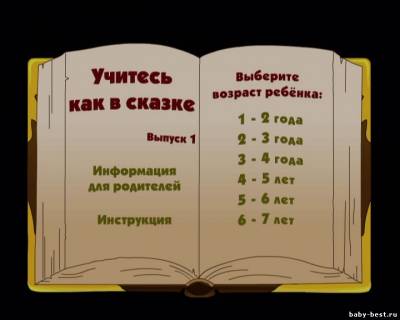 Эти диски предназначены для детей от 9-ти месяцев до 7-ми лет, но вы можете начать обучение ребёнка намного раньше, — интерактивные DVD-диски комплектуются аудиодиском с записью всех текстов сказок для пассивного прослушивания с самых первых месяцев жизни. После каждого мультфильма предлагаются интерактивные упражнения, соответствующие возрасту ребёнка. В возрасте от 9-ти месяцев до 1 года рекомендуется только просмотр мультфильмов со сказками без упражнений. Начиная с 1 года и старше, ребёнок сможет выполнять упражнения, где нужно определить картинку, соответствующую произнесённому или написанному слову, выбрать картинку, которая иллюстрирует произнесённое предложение или является ответом на вопрос, прочитать слова, а позднее и предложения, которые соответствуют картинке. Серия “Чудо-малыш – Учитесь как в сказке” состоит из 5-ти интерактивных DVD дисков и одного аудио CD. Интерактивный DVD — новая технология обучения и развлечения для самых маленьких.