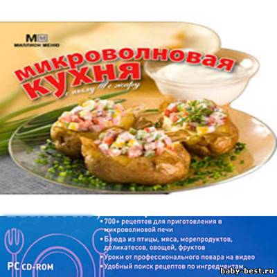 На диске собраны рецепты аппетитных закусок, основных блюд, супов, гарниров, пирогов и даже десертов. Здесь содержатся материалы, рассказывающие об особенностях приготовления еды в микроволновой печи, полезная информация о том, как избежать многих ошибок, а также подробные таблицы и практические советы, которые помогут превратить процесс готовки в настоящее удовольствие.