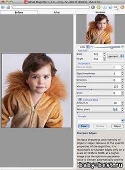 AKVIS Magnifier — программа для изменения размера цифрового изображения без потери качества. При изменении размера изображений в большинстве программ используются самые простые алгоритмы интерполяции. Для уменьшения фотографии их вполне достаточно, так как в полученном изображении содержится гораздо меньше информации. Если же вы захотите увеличить фотографию, да еще во много раз, то обязательно столкнетесь с проблемой потери качества. Обычные алгоритмы не справляются с такой сложной задачей, и даже Photoshop здесь бессилен.