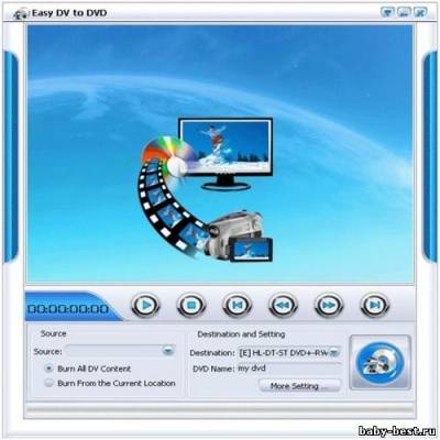 Огромная армия владельцев цифровых пленочных видеокамер после отснятия видеоматериала сталкиваются с проблемой как проще фильм с пленки Mini DV на обычный DVD диск для хранения или просмотра на бытовом DVD плеере. Новый продукт от известного производителя позволяет это сделать легко и просто. Помимо простой конвертации в образ диска или создания DVD папки программа позволяет делать копию DV пленки, добавлять меню, титры и разделы в DVD диск, отрегулировать формат, размер и качество результата.