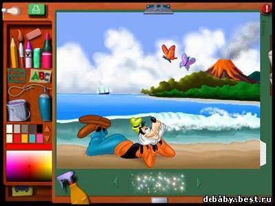 Игра разделена на две части: очень симпатичная детская рисовалка, раскрашивалка, программа для создания композиций. Из персонажей диснеевских мультфильмов можно составлять картины и по-разному их раскрашивать. А во второй игре они еще и танцуют. Кроме того, есть куча инструментов для изменения размеров и всевозможных других действий. Мультипликационный интерфейс этого графического редактора поможет детям создать свои собственные картины, мультфильмы, слайд-шоу.