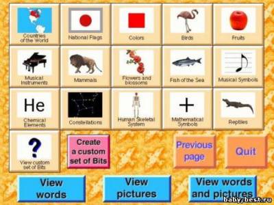 Описание: Этот словарь в картинках делает изучение отдельных слов и картинок легким и веселым для вашего ребенка на 5 языках с правильным произношением. Каждый из 10 дисков содержит 150 цветных изображений и их значений в виде крупно отображаемых слов проговариваемых носителями языка на Английском, Японском, Французском, Испанском и Итальянском языках в зависимости от вашего выбора.