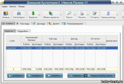 Программа Домашняя бухгалтерия для ПК и КПК предназначена для ведения учёта домашних финансов. С ее помощью вы можете вести учет не только личных финансов, но и финансов всей своей семьи, или использовать ее для ведения бухгалтерии вашей компании.