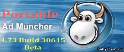I.Portable Ad Muncher & USB 4.73 Build 30615 Beta — утилита для удаления всплывающих окон и баннерной рекламы. Главная особенность — небольшой размер. Работает из системной панели, интегрируется практически со всеми браузерами, а также удаляет рекламу из ICQ, Morpheus, Kazaa, Opera, iMesh и многих других программ. Несмотря на скромный размер, программа великолепно удаляет рекламу с посещаемых страниц, определяя их по: адресу, размеру, подписи (тэг alt). Помимо баннеров Ad Muncher успешно борется с: музыкой на страницах; фоновыми картинками; выскакивающими окнами (popups), автоматически обновляющимися страницами, скриптами, изменяющими состояние status barа скриптами, блокирующими правую кнопку мыши. Все опционально и может быть настроено. Ad Muncher не требует дополнительной настройки програмного обеспечения, он работает <<прозрачно>> для вашего броузера или другого ПО. Путешествуя по интернету, надо иметь довольно крепкую нервную систему для адекватной реакции на агрессивное поведение сайтов. Уже восемь лет как лучшая, маленькая австралийская программа Ad Muncher предлагает Вам новое быстрое и качественное путешествие по просторам сети без назойливой рекламы. Работает практически с любыми современными браузерами Internet Explorer, Opera, Firefox, Mozilla и Netscape, и c надстройками над Internet Explorer, такими как Maxthon и Avant Browser. Позволяет тем самым увеличивать скорость загрузки страницы и сэкономить трафик. В дополнение удаляет баннеры в клиентах: ICQ, Morpheus, Kazaa, Grokster, Опера, PalTalk, iMesh, Bearshare, LimeWire, и т.д. Вместе с программой теперь поставляется список с более чем 3200 фильтрами, которые можно обновлять каждые несколько дней.
