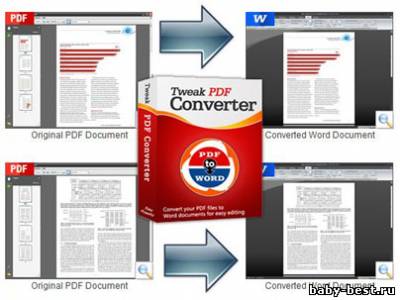 Tweak PDF Converter – самый аккуратный конвертор PDF-документов в формат Word в мире. Преобразовывает PDF Word со 100% точностью с полным сохранением форматирования. Переносит в редактор Word все таблицы, изображения, макет, текстовое содержание включая отдельные элементы PDF – логотипы, баннеры, схемы и т. д. В результате работы Tweak PDF Converter пользователь получает документ Word, полностью доступный для редактирования любого элемента. При сохранении обработанного документа, кроме основного формата Word, есть возможность сохранения в формате RTF (Rich-Text Format). Отдельно хочется отметить, что для работы программы пользователю нет необходимости иметь на компьютере ни пакет офисных приложений Microsoft Office, ни Adobe Acrobat и Acrobat Reader. — Вся работа производится автономно.